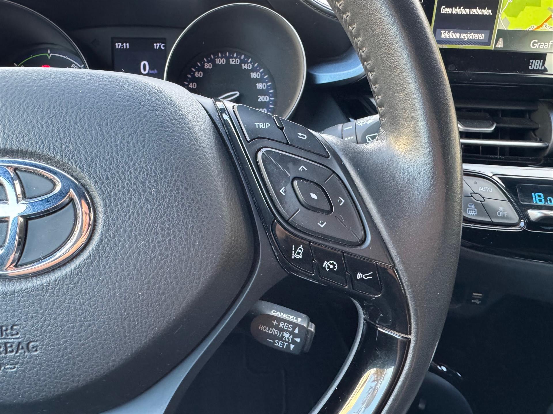 Hoeveel ruimte heeft u nog bij het inparkeren? De parkeerhulp met achteruitrijcamera brengt helder in beeld wat zich achter de auto bevindt en geeft een geluidssignaal. Met adaptive cruise control houdt de auto zelfstandig afstand tot uw voorligger. Een veiligheidsverhogende optie waarmee u comfortabel onderweg bent. Muziek luisteren wordt genieten met het high performance audiosysteem. Het spreekt voor zich dat een auto als deze ook van climate control is voorzien. Altijd goed zicht dankzij de regensensor, onder alle weersomstandigheden. U bent in deze Toyota ook voorzien van audiobediening op het stuur, DAB+ tuner, keyless entry, buitentemperatuurmeter, automatisch dimmende binnenspiegel en 2 isofix-aansluitingen.