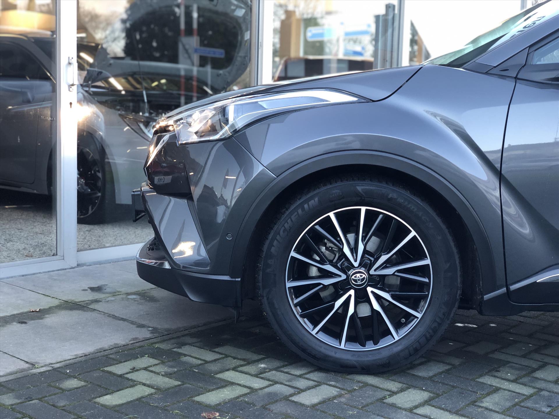 Dit is een auto die is ontworpen voor uw comfort. Deze Toyota C-Hr van het bouwjaar 2017 heeft 102666 kilometer op de teller staan. De combinatie van een verbrandingsmotor en een elektromotor zorgt voor prima rij-eigenschappen en een laag brandstofverbruik. Het interieur ademt luxe door de leren bekleding. Bestuurder en bijrijder krijgen een warm welkom: deze Toyota C-Hr is voorzien van verwarmbare voorstoelen. Ook 18 inch lichtmetalen velgen, LED-dagrijverlichting, donker getint glas achter, in delen neerklapbare achterbank, elektrisch bedienbare en verwarmde buitenspiegels en elektrisch verstelbare lendensteun horen tot de voorzieningen op deze auto.
