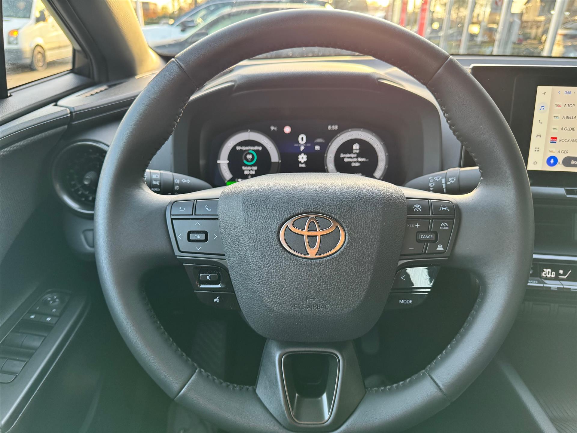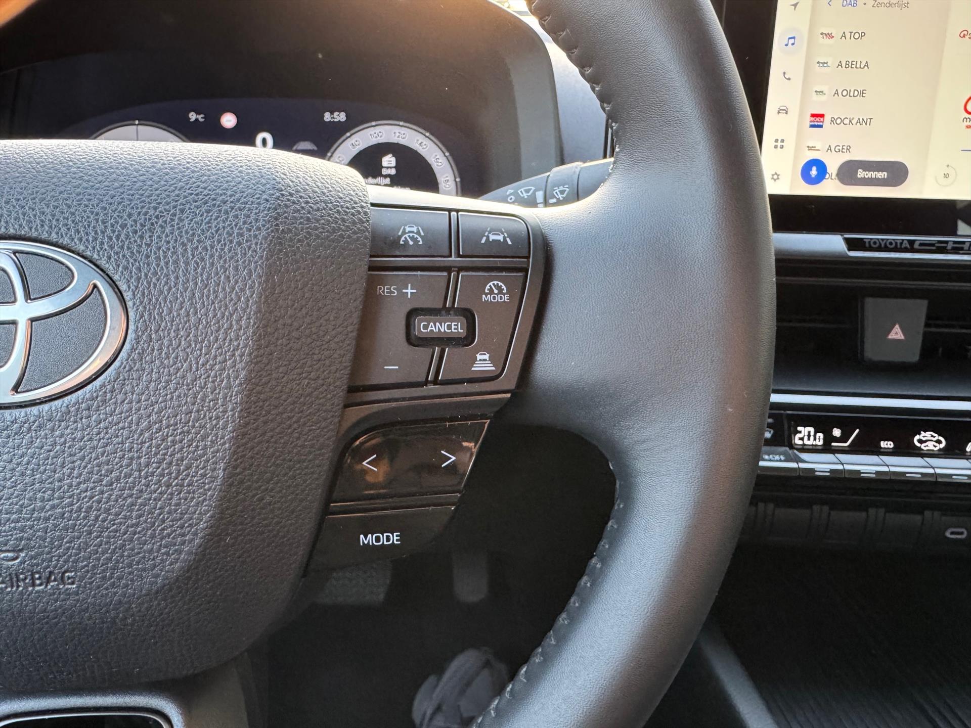- Stuurwiel v.z.v. bedieningsknoppen voor audio, telefoon, Voice Recognition Head-Up Display en Toyota Safety Sense