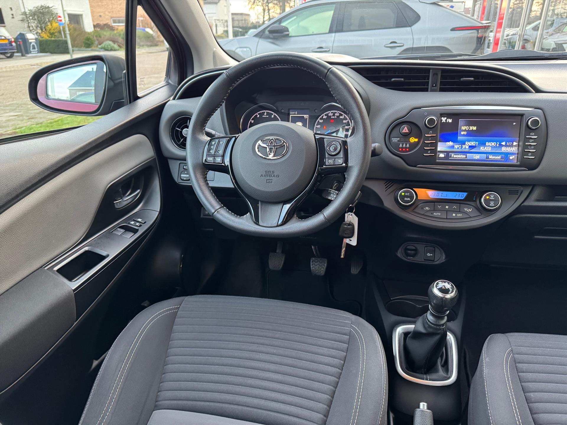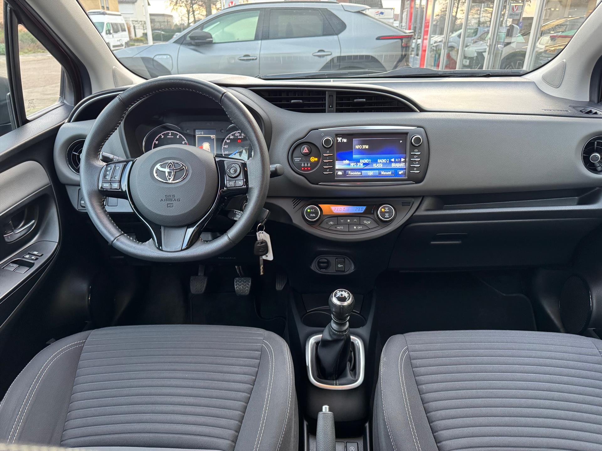 Zoals u mag verwachten van deze Toyota Yaris is hij uitgerust met een reeks aan actieve veiligheidssystemen. Het forward collision warning-systeem is constant alert en detecteert via sensor de afstand tot voorliggers. Wordt die te klein, dan volgt een automatische waarschuwing. Even afgeleid? De lane assist waarschuwt als u over de streep dreigt te gaan. Verder is deze auto uitgerust met hill start assist, brake assist en bandenspanningcontrolesysteem.