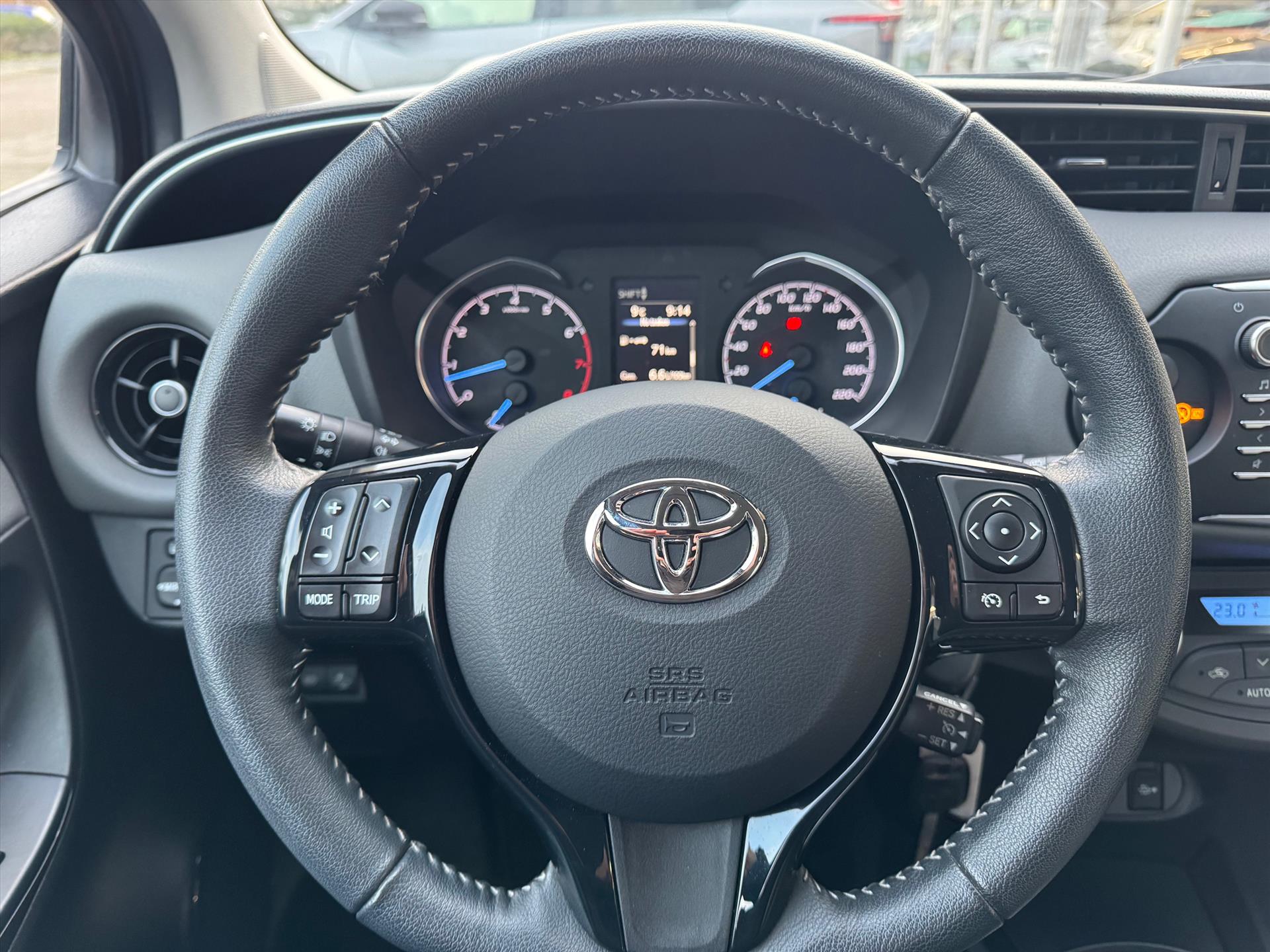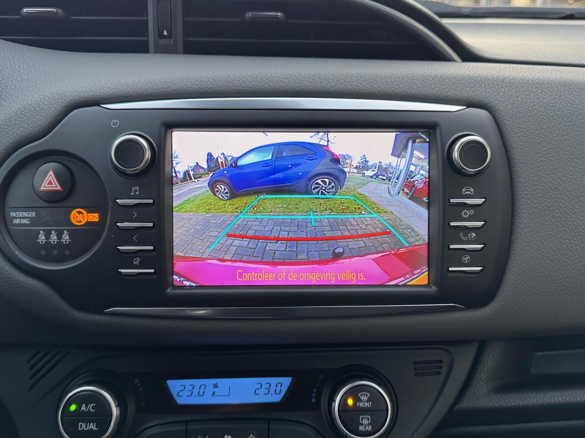 Kommaar-kommaar-kommaar, aldus de parkeerhulp met achteruitrijcamera. Iedere centimeter vrije ruimte komt haarscherp in beeld. Schadevrij inparkeren maar! De automatische airconditioning zorgt onder alle omstandigheden voor een prettige temperatuur. Deze Toyota Yaris is voorzien van een regensensor, zodat de ruitenwissers altijd de juiste snelheid hebben. De cruise control betekent gemak, comfort en zuinig rijden. Via de usb-aansluiting koppelt u een usb-stick, muziekspeler of smartphone met het audiosysteem. Met 3-spaaks lederen stuur, 2 isofix-aansluitingen, centrale deurvergrendeling met afstandsbediening, toerenteller en lederen versnellingspook is deze Toyota helemaal compleet.