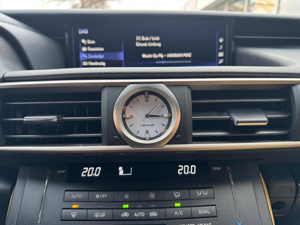 Met dit audiosysteem met DAB-ontvanger luistert u naar glasheldere digitale radio. Bluetooth zorgt ervoor dat u uw muziek ook draadloos af kan spelen. Of plug uw muziekbibliotheek in via de usb-aansluiting. Tot de standaard uitrusting van deze auto hoort ook electronic climate control. Geen parkeervak is te klein dankzij de assistentie van de parkeersensoren. Om de veiligheid onderweg te verhogen, heeft deze Lexus zowel een automatisch inschakelbare verlichting als een regensensor aan boord, zodat hij zelf de verlichting en de ruitenwissers kan inschakelen. De cruise control levert een mooie, gelijkmatige koers. Dat rijdt prettig. Natuurlijk behoren schakelpaddles aan het stuur, keyless entry, automatisch dimmende binnenspiegel, isofix-aansluiting en bekerhouder ook tot de uitrusting van deze complete auto.