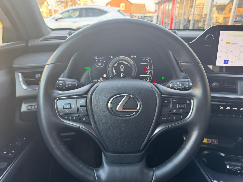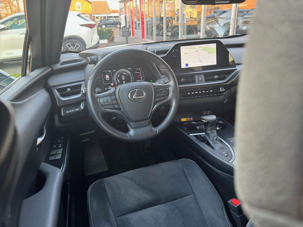 Ook is de auto voorzien van climate control. De audiobediening op het stuur zorgt dat muziek en informatie kunnen worden aangepast zonder het zicht op de weg te verliezen. Parkeersensoren ondersteunen u tijdens het in- en uitparkeren. De regensensor reageert op de neerslag die op de voorruit belandt. Van een paar spatjes tot een hoosbui: de ruitenwissers weten wat ze te doen staat. Met de keyless entry ontgrendelt deze Lexus Ux zich automatisch als u het portier wilt openen. Deze Lexus is voorzien van automatisch dimmende binnenspiegel en bekerhouder.