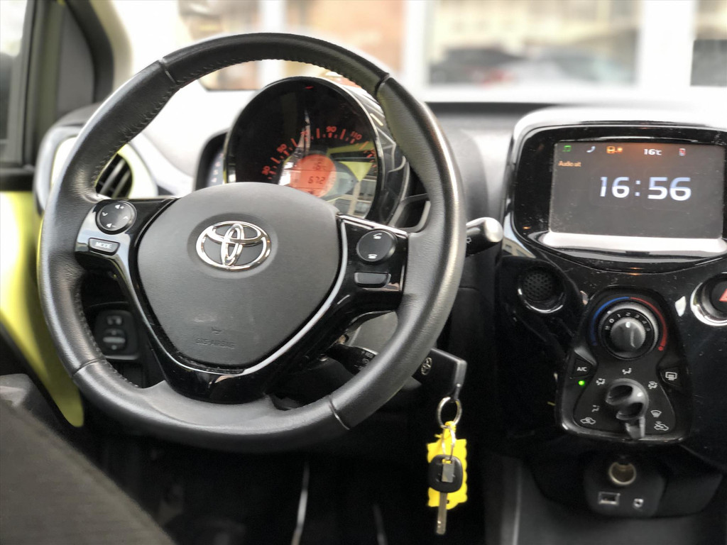 De Toyota Aygo is gebouwd met hoogwaardige techniek en maakt het rijden van lange ritten, maar ook korte stukjes, tot een feestje. In deze Toyota vindt u een benzinemotor en een handgeschakelde vijfversnellingsbak. Tot de uitrusting behoren ook 15 inch lichtmetalen velgen, donker getint glas achter, stoffen bekleding, snelheidsbegrenzer, metallic lak, elektrisch bedienbare ramen voor, elektrisch bedienbare en verwarmde buitenspiegels, led-dagrijverlichting en in delen neerklapbare achterbank.