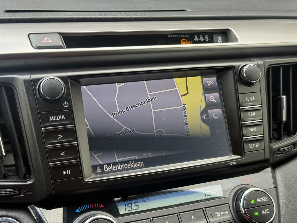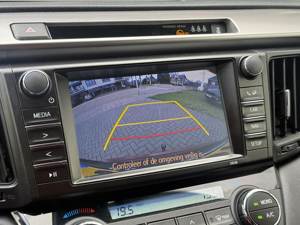 Zoals u mag verwachten van deze Toyota RAV4 is hij uitgerust met een reeks aan actieve veiligheidssystemen. Lane assist is een andere naam voor rijstrookassistent. Dit veiligheidssysteem waarschuwt als u onbedoeld buiten uw rijstrook terechtkomt. Die hill hold control: ja, die had u wel willen hebben bij het afrijden. Want zo stelt een hellingproef echt niks meer voor. Brake assist herkent een noodsituatie en voert de remdruk op om de remweg te verkorten.